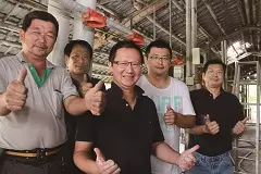 他帶著記者來到放養地,一隻隻毛色發亮的黑毛豬,在豬圈中慵懶打盹,幾隻頑皮些的,在矮樹下繞進繞出地玩耍。他丟了根絲瓜進圈內,兩隻小豬以豬鼻蹭著絲瓜玩了起來。一隻隻圓滾滾的黑毛豬在我們眼下搖晃著身軀,而結實的肉質感,說明了一種健康與活力所自然散發出的彈力芳香。